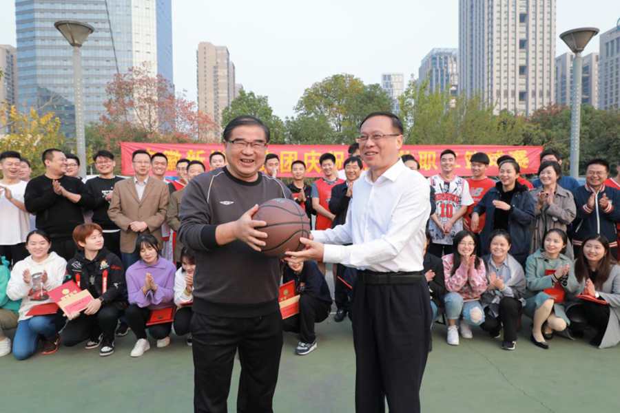集團副總經理周林立為女子定點投籃個人賽、團體賽二等獎獲得者和男子組二等獎獲得者頒獎